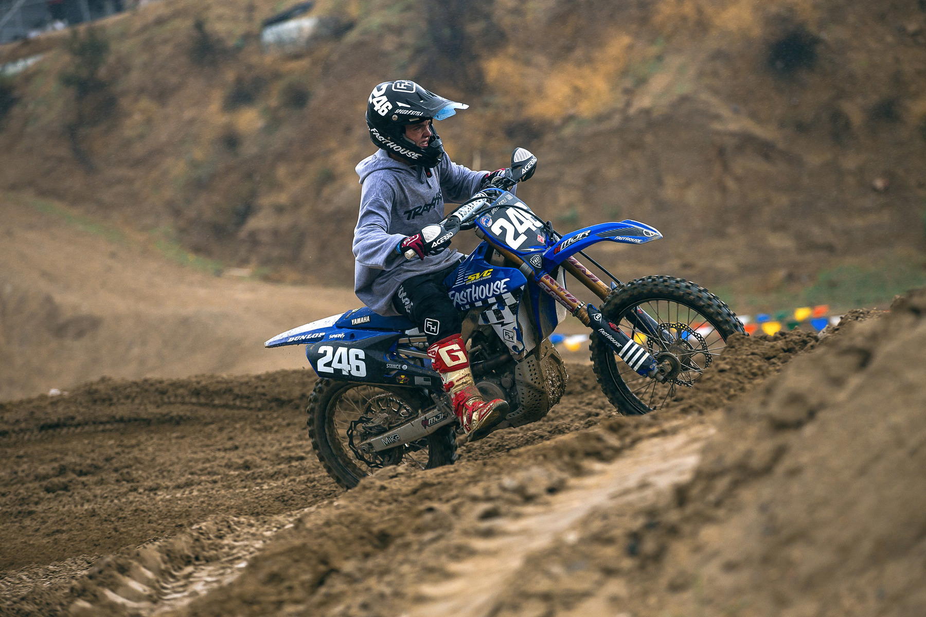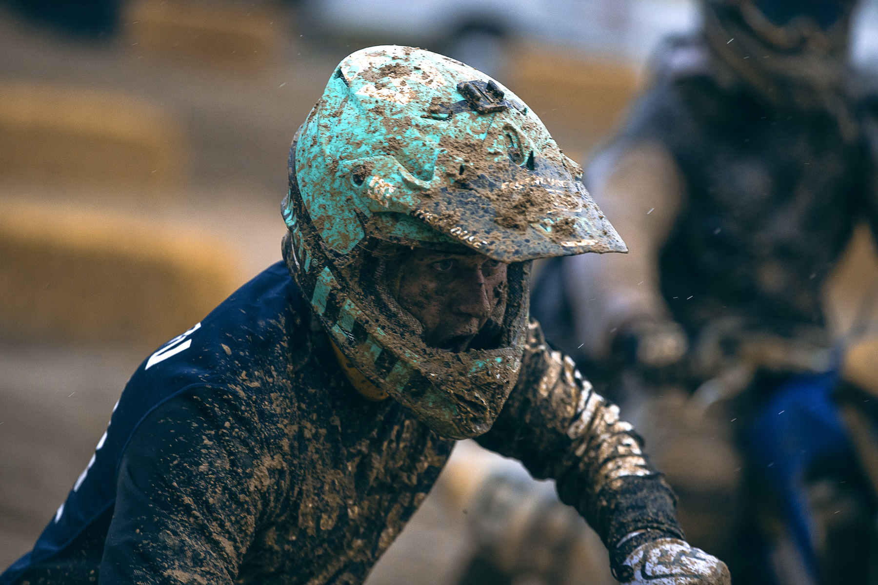 It rained all night, but Kenny Alexander and the crew worked tirelessly to get the track ready for the final day of racing. After scouting the ridgeline at 3:00 AM, they got to work, re-routing the track and prepping it before more rain hit just before the Moto A Go-Go team race. Once the downpour began, though, all bets were off—Glen Helen turned into a soupy mess.