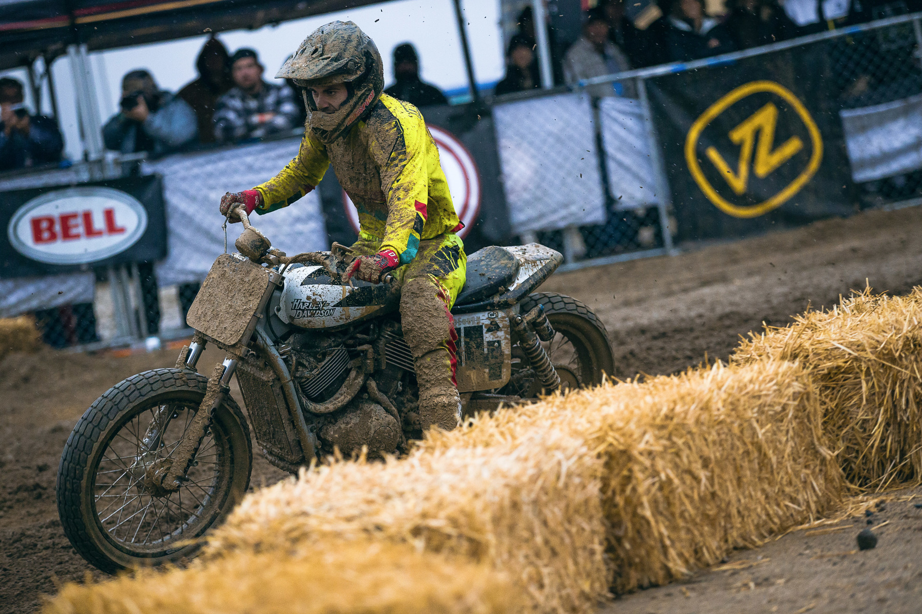 Just as the weather man predicted, the skies opened up at 3:00 pm on Saturday and never really subsided for the rest of the weekend. The steady downpour forced the Hell On Wheels TT and Roland Sands Super Hooligan events to be held in the mud, making for some pretty rad photos. In spite of the wet weather, everyone still had ear-to-ear grins when they pulled off their helmets and reached for a cold one.